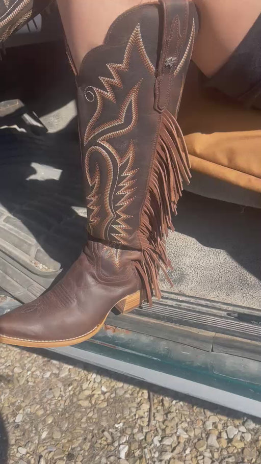 Dan Post Women's Prairie Dancer Brown Leather 18" Fringe Cowboy Boots - DP7103