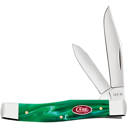 24413 TEXAS JACK - GREEN PEARL KIRINITE - RED SPARXX OVAL SHIELD Blades: CLIP AND PEN Length Closed: 3 5/8 ...