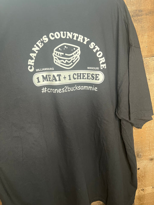 Crane's Country StoreIn stockUnisex short sleeve T shirt featuring our custom 130 logo on the front and our One Meat One Cheese sandwich artwork on the back. Men's sizing.