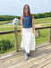 The Denim Darlin' features an elaborate contrast stitching pattern on both the vamp and shaft that creates a stunning visual appeal. The denim-inspired design adds a fresh twist to traditional western styling, making these boots perfect for everything from country concerts to casual weekend adventures.