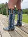 Make a bold statement with the Dan Post Denim Darlin' Boots – where classic western charm meets contemporary fashion. These stunning 19-inch tall boots are designed for the modern cowgirl who isn't afraid to stand out from the crowd.
